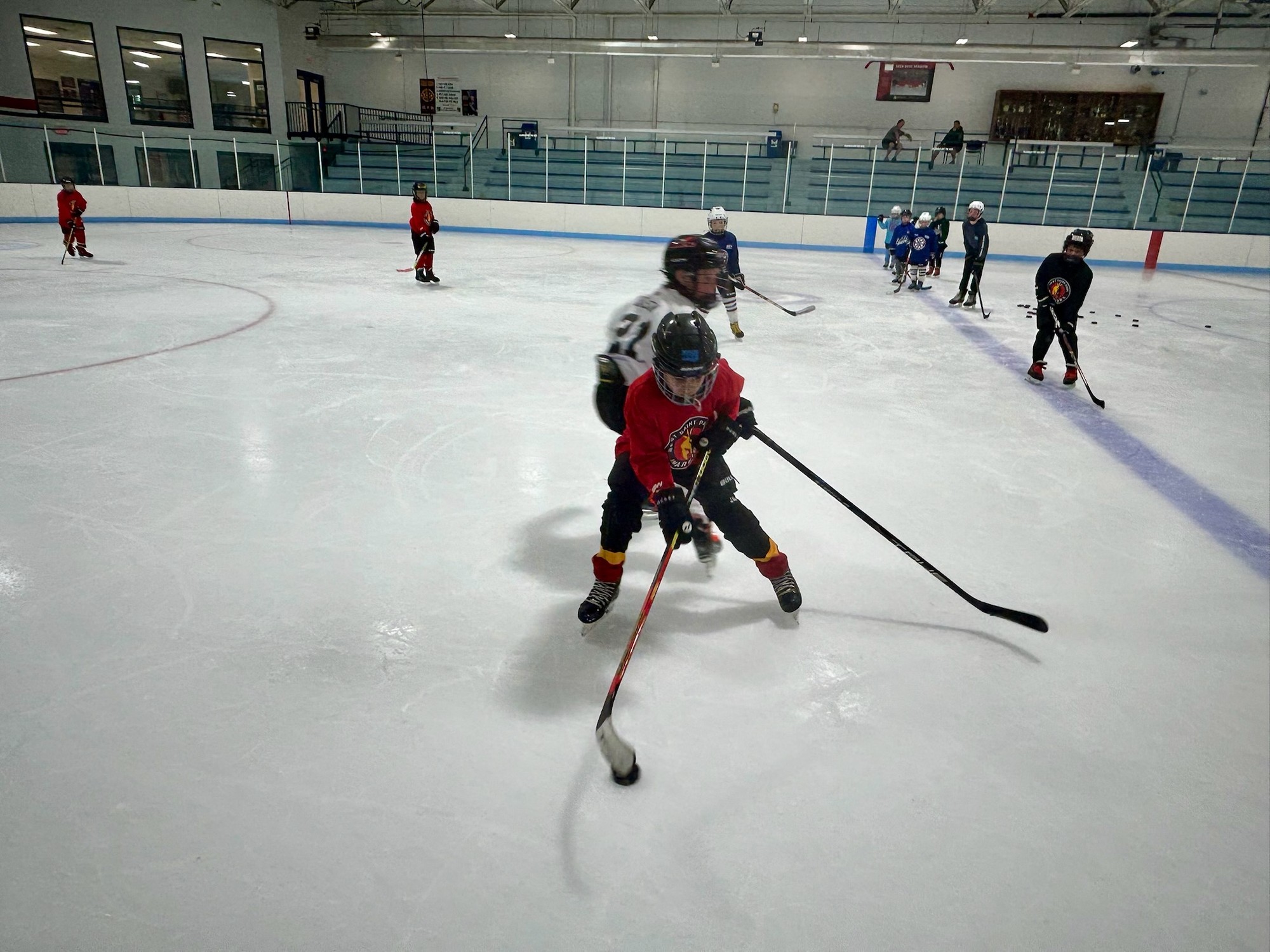 8U/Mite and 10U/Squirts will participate together. We appropriately separate hockey players based on their skill sets as needed, depending on the drill. It is expected that players are not completely new to skating and have some initial experience playing hockey.